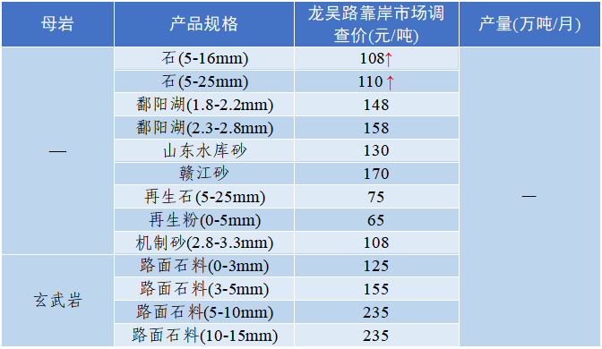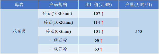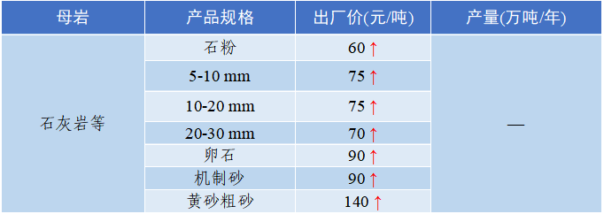 ◇ 四川省:天府新区碎石(10-30mm)出厂价119.7元/吨,机制砂出厂价130.4元/吨,天然砂出厂价116.5元/吨;自贡市碎石(10-30mm)出厂价133.6元/吨,机制砂出厂价138.8元/吨,天然砂出厂价123.9元/吨。